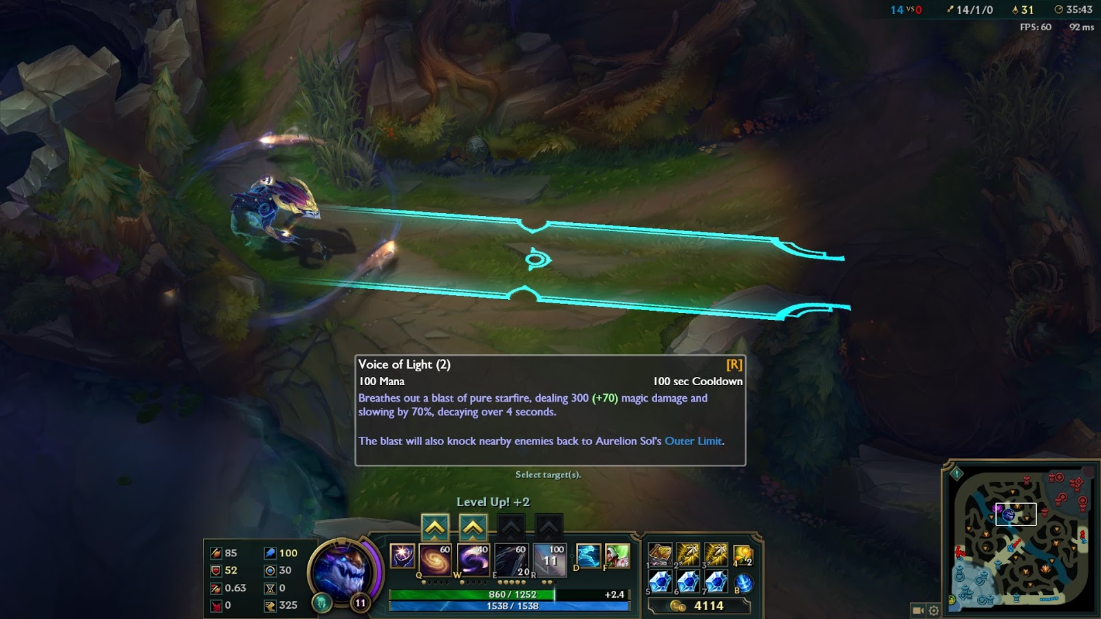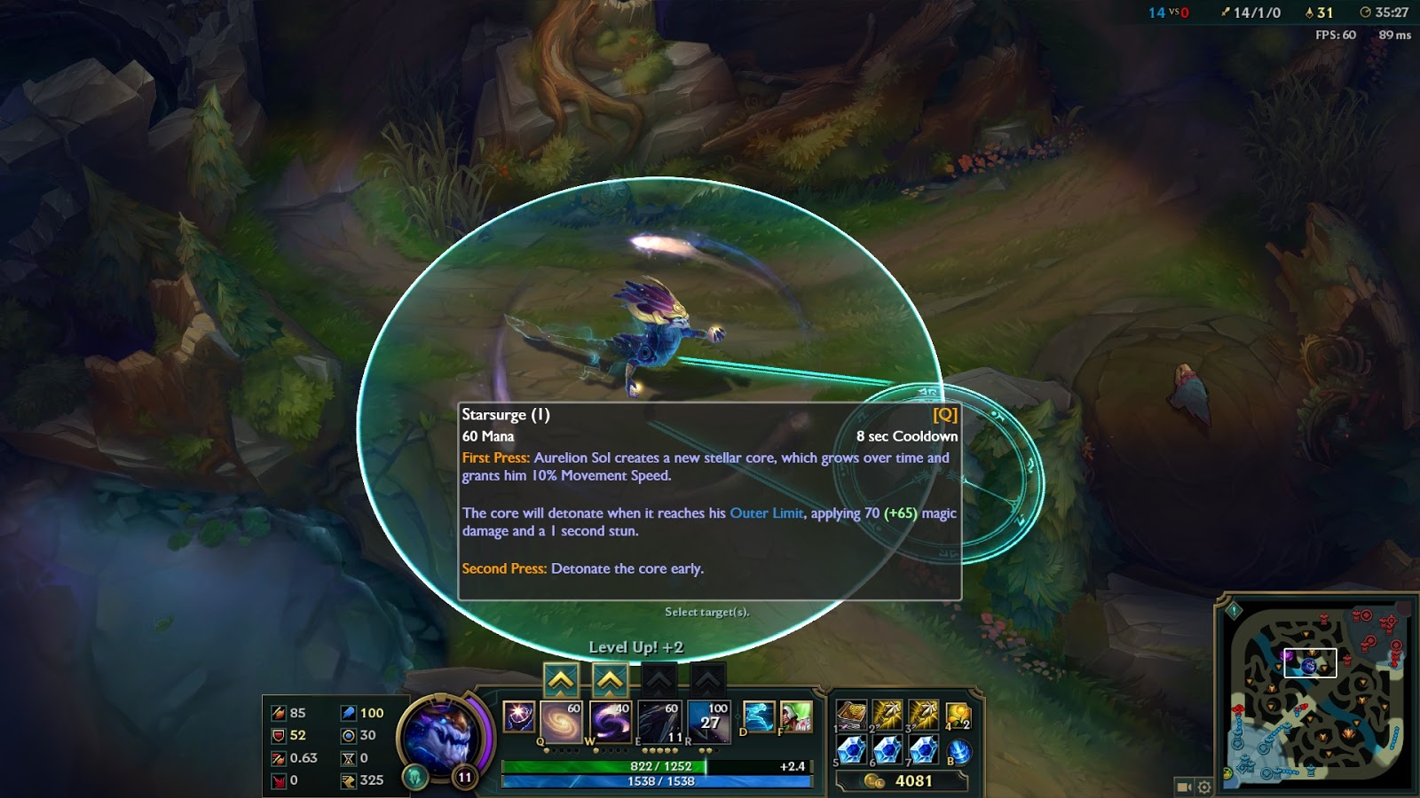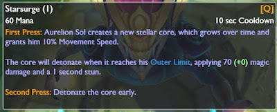 "First Press: Aurelion Sol creates a new stellar core, which grows over time and grants him 10% Movement Speed.